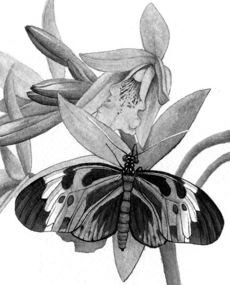 Illustrated with ink wash and Micron pens on hot press watercolor paper.